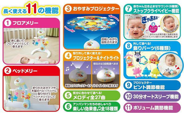 他の画像を見る 天井にアンパンマンの映像を映すプロジェクター機能付き アンパンマン すやすやプロジェクション付きメリー ベッドメリー 6ヶ月レンタル料金 ¥ 5,500 1ヶ月レンタル料金 ¥ 3,300 税込 アンパンマンと仲間たちの画像を天井に映し出すプロジェクション機能付き 詳細を見る お気に入りに登録する