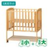 コンパクトサイズより少し大きめの小型サイズのベビーベッド。1才頃までお使いいただけます。小型サイズなので省スペースでも設置可能です。
